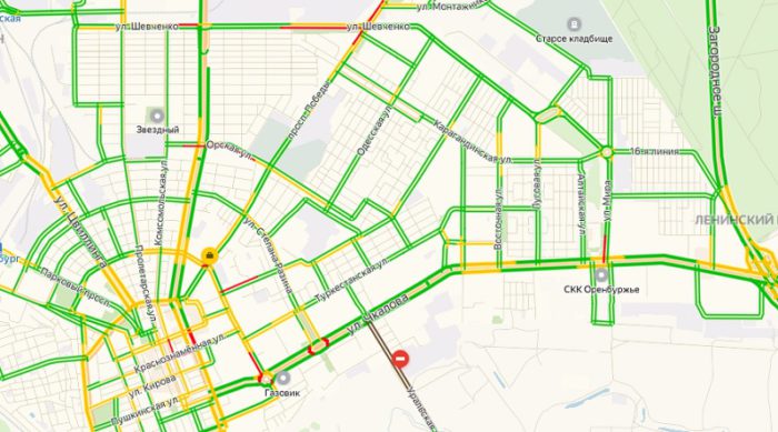Также в вечерний час пик забиты Шевченко и Орская. Обе улицы стоят до пересечения с проспектом Победы.