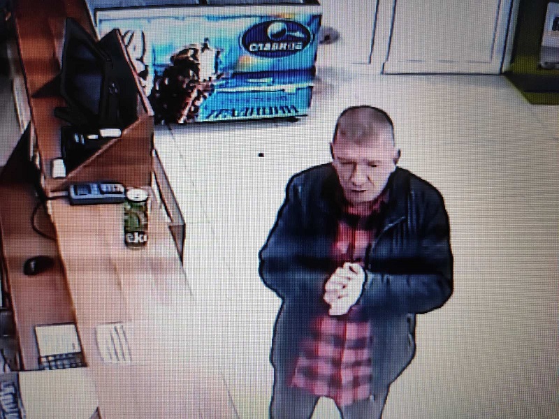 Мужчина был одет в черную куртку, тёмные брюки и красную рубашку в клетку.