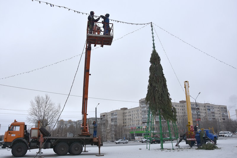 Так, в Степном поселке в парке 50-летий СССР уже смонтировали каркас 22-метровой елки. Аналогичные работы полным ходом идут на проспекте Гагарина.