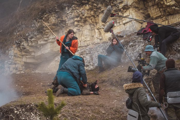 Съемки сериала «Стая» проходили в экстремальных условиях в Краснодарском крае, Дагестане и Северной Осетии, куда группа отправилась в двухмесячную экспедицию. А прежде актеры усиленно готовились к съемкам в Москве: прошли обучение скалолазанию и безопасному поведению в горах, а также научились стрелять из лука. Съемочные дни начинались в три утра, а путь до площадки иногда занимал два с половиной часа. Работа над проектом велась в условиях дикой природы, поэтому группу ожидали сложные спуски и подъемы, вертолетные съемки, сплавы по реке, сцены в ледяной воде и непредсказуемая погода.