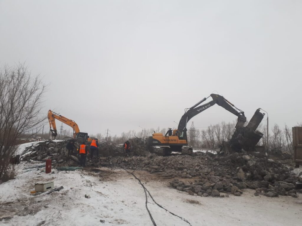 Работы по разбору обломков виадука ведутся в круглосуточном режиме и к середине следующей недели должны закончится. Параллельно ведутся предпроектные изыскания и подготовка к возведению нового путепровода.