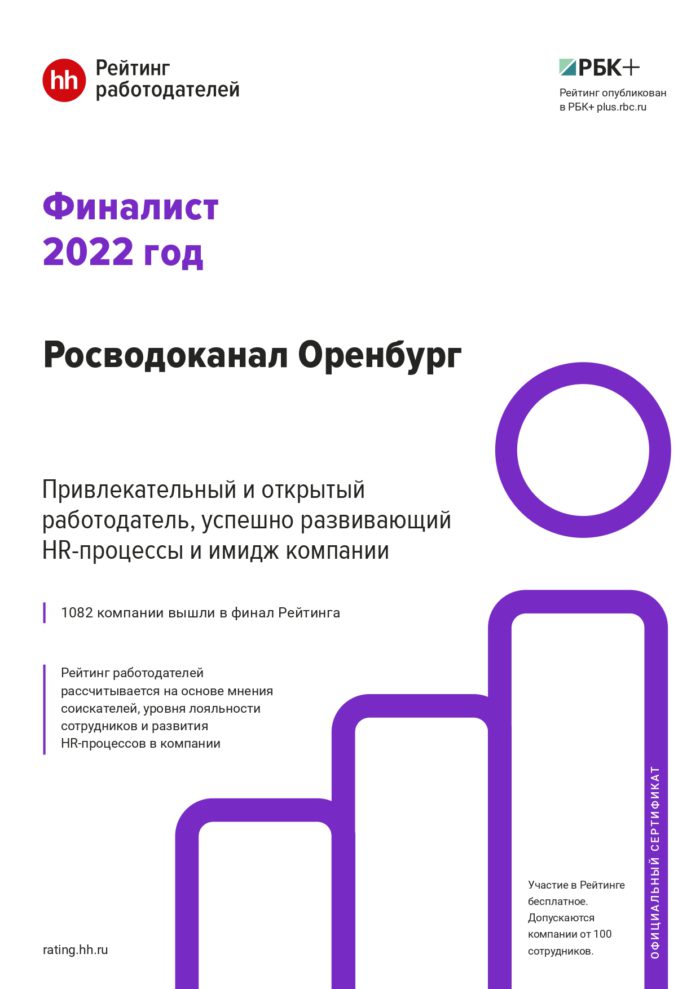 Компания HH.RU опубликовала результаты рейтинга работодателей России за 2022 год. В списке свыше 1000 компаний со всей страны. Из Оренбургской области в рейтинг вошли три работодателя, в числе которых «Росводоканал Оренбург».