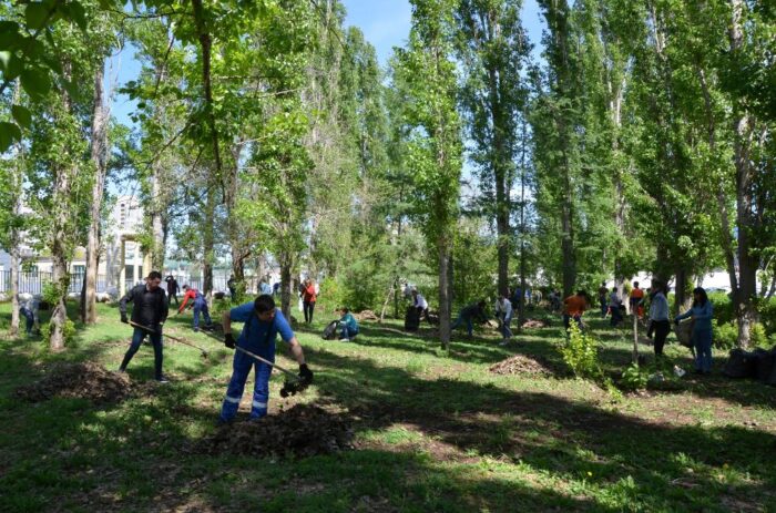 Живописный сквер с огромными пирамидальными тополями — любимое место отдыха работников оренбургского водоканала. На его уборку сотрудники предприятия вышли охотно и дружно: собрали мусор и прошлогоднюю листву, побелили бордюры.