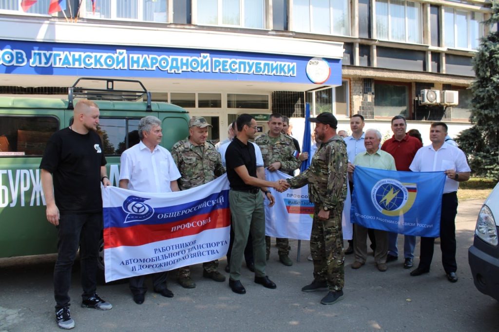 Профлидеры Оренбуржья преодолели 1 800 километров на двух профсоюзных автомобилях и приехали в Луганскую Народную Республику. УАЗ передали мобилизованному из Оренбуржья члену профсоюза. В коробках с гуманитарным грузом профсоюзные лидеры привезли одежду, перчатки, резиновые сапоги, влажные салфетки, воду, нескоропортящиеся продукты, медикаменты, водо- и ветроустойчивые спички, камуфляжные сети, коврики.