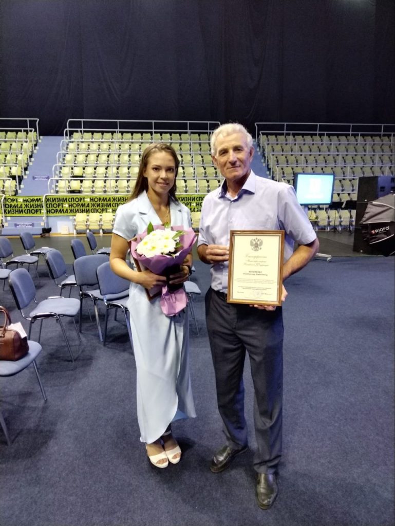 Чествование спортсменов прошло в Оренбурге во время торжественного мероприятия, посвященного 100-летию Министерства спорта России. Награды тренеру и чемпионке вручил министр спорта региона Олег Панькин.