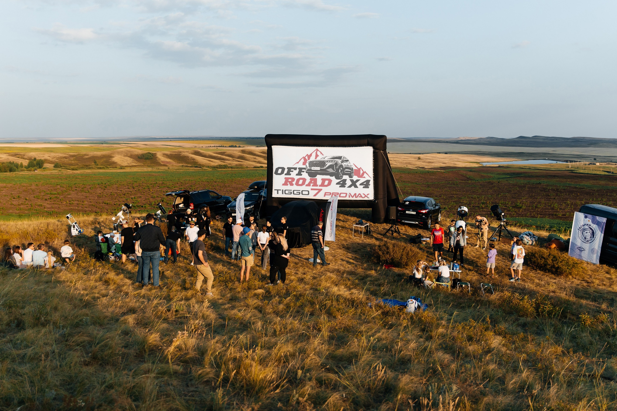 В этом году астровыезд получилось провести в новом формате. За час до начала лекции партнер астровыезда — автосалон «Восток -Авто» — официальный дилер автомобилей Chery в Оренбурге -провел тест-драйв нового полноприводного семейного внедорожника Chery Tiggo 7 PRO MAX. Ребята выбрали безупречно красивую локацию — среди степей и холмов, и, конечно, в программе был настоящий пикник и сувениры для участников тест-драйва.