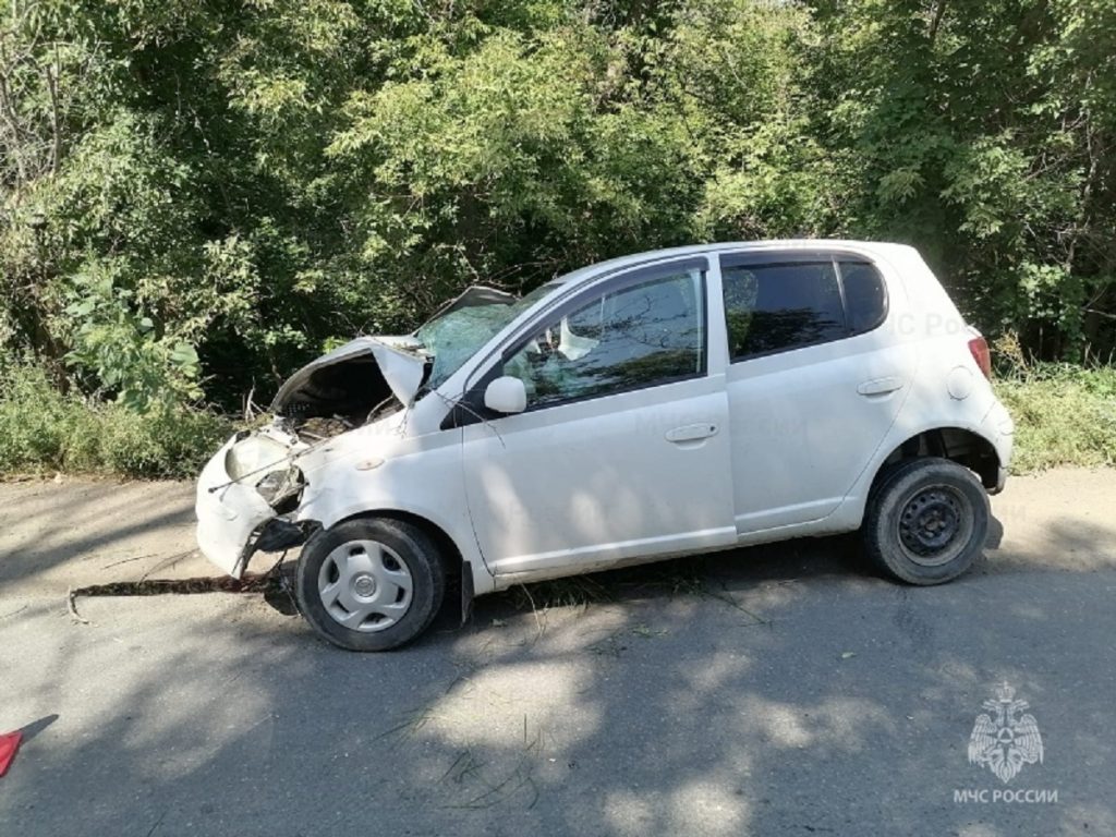 Информация об аварии на улице Соболева Гора поступила на пульт дежурного в 13.06. Предварительно установлено, что водитель автомобиля Toyota Vitz не справился с управлением и протаранил дерево.