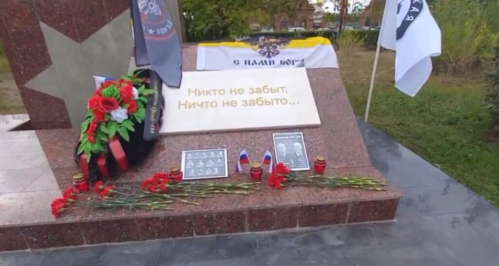 На месте мемориала зажгли свечи. Оренбуржцы несут туда цветы. У постамента лежат портреты Евгения Пригожина и командира ЧВК «Вагнер» Дмитрия Уткина. Там же установлен флаг военной компании.
