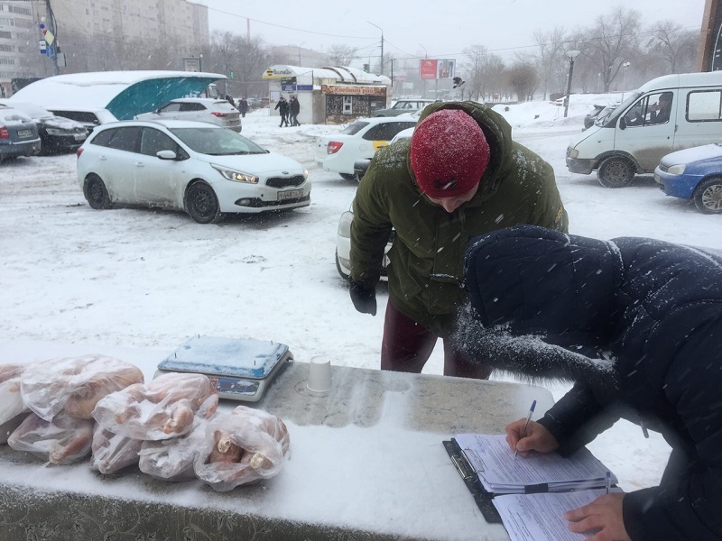 Оренбуржцы активно покупают на улице масло, кур, рыбу и колбасные изделия. На вопрос членов комиссии, есть ли документы, подтверждающие разрешение на торговлю и качество продаваемой продукции, продавцы разводят руками.