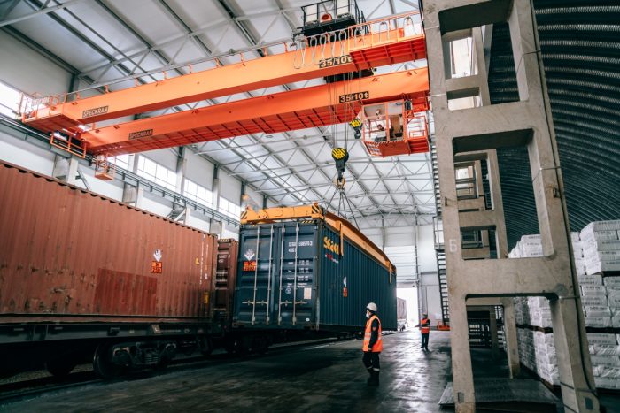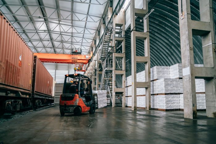 Первое, что показывают на «Оренбургских минералах» — это новый терминал. Его построили в максимально сжатые стройки, всего за год. Контейнеры с готовой продукцией грузят на железнодорожные платформы и отправляют на восток. Раньше хризотил ехал в другом направлении.