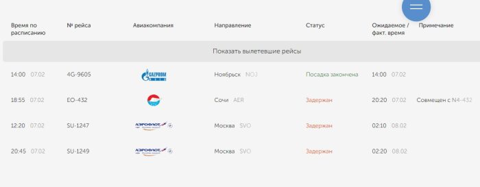 Судя по данным электронного табло аэропорта, задержаны самолеты в Москву и Сочи.