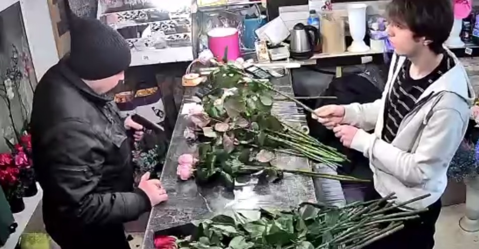 Судя по записи с камеры видеонаблюдения, установленной в цветочном магазине, мужчина покупал 13 роз и ждал, пока флорист их завернет. В какой-то момент покупатель занервничал и решил поторопить продавца, достав из кармана предмет, похожий на пистолет. Он пригрозил пристрелить юношу и прикрикнул: «Давай быстрее!».