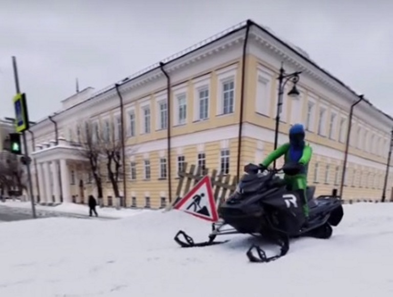 Диджитал-художники продолжают творить на самые актуальные темы для Оренбурга. В новом ролике заснеженную пешеходную зону резво рассекает человек на снегоходе.