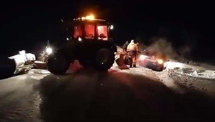 Полицейские нашли трактор, который вытянул иномарку и сугроба. Водитель поблагодарил за помощь на дороге и продолжил путь.