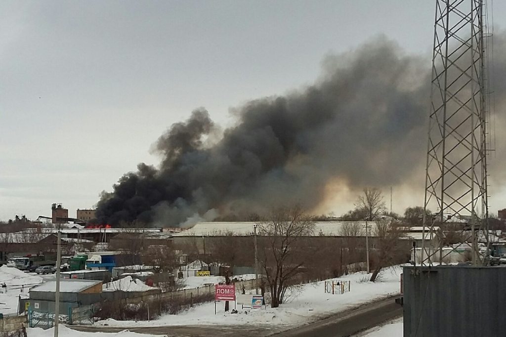 Серьезный пожар случился на улице Кавказской Оренбурга. Известно, что вспыхнули складские помещения на площади около 1 000 квадратных метров.