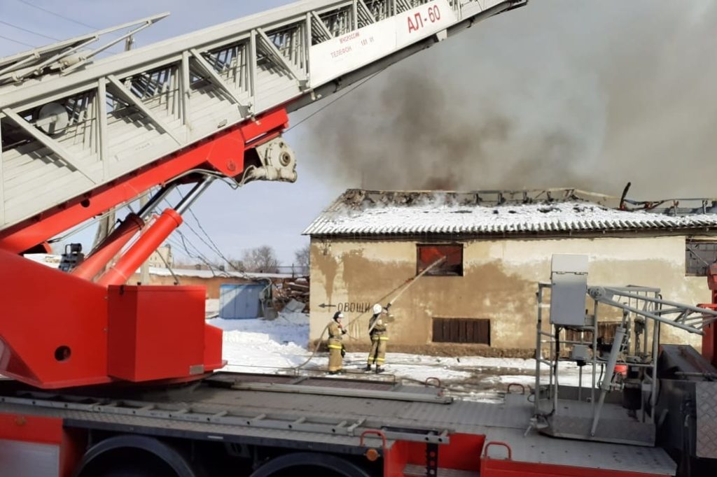 В Оренбурге продолжают ликвидацию серьезного пожара, который случился на улице Кавказской. По предварительной оценке, площадь возгорания составила около 1 000 квадратных метров.