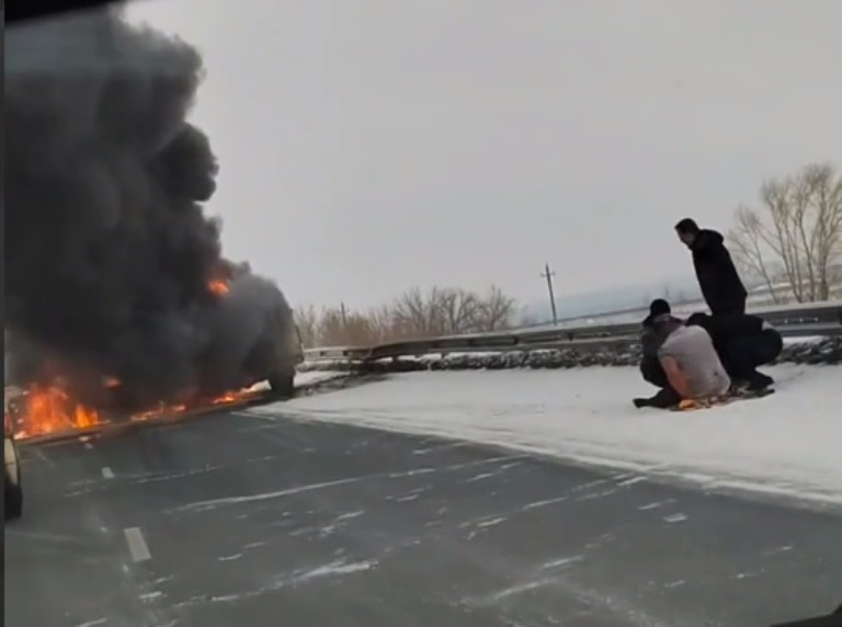 В Оренбуржье на трассе загорелась грузовая «Газель». Есть пострадавшие
