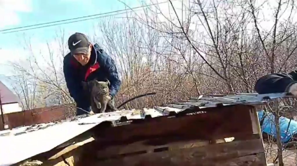 Помощь потребовалась и серому коту. Его достали из затопленного под крышу сарая.