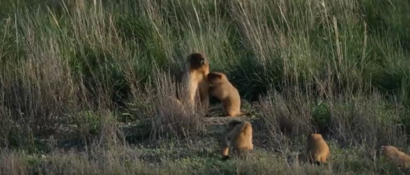 В этом году «поспешили» не только первоцветы, но и сурчата. Они вышли на поверхность уже в 20-ых числах апреля. Момент игры и даже драку сурчат удалось снять другу заповедника Константину Митрофанову.