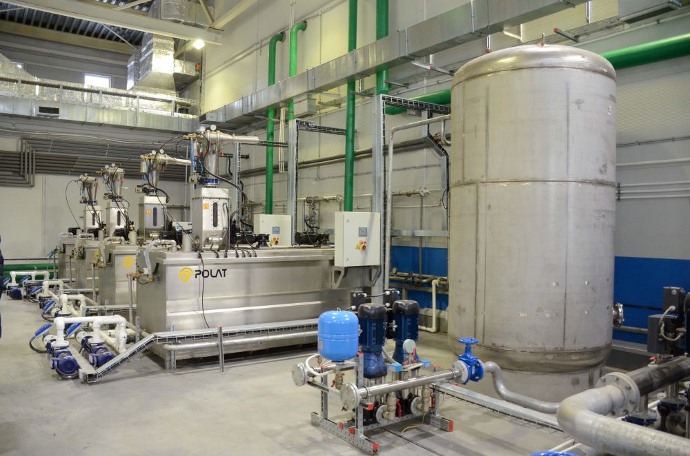 Цех мехобезвоживания вышел на проектные мощности. Теперь иловый осадок, обработанный флокулянтом, уплотняется на ленточных сгустителях, а затем смесь осадков (сгущенный ил и сырой осадок) обезвоживается на декантерных центрифугах. Полученный кек обрабатывается дезолаком и вывозится специально оборудованными шламовозами на полигон.