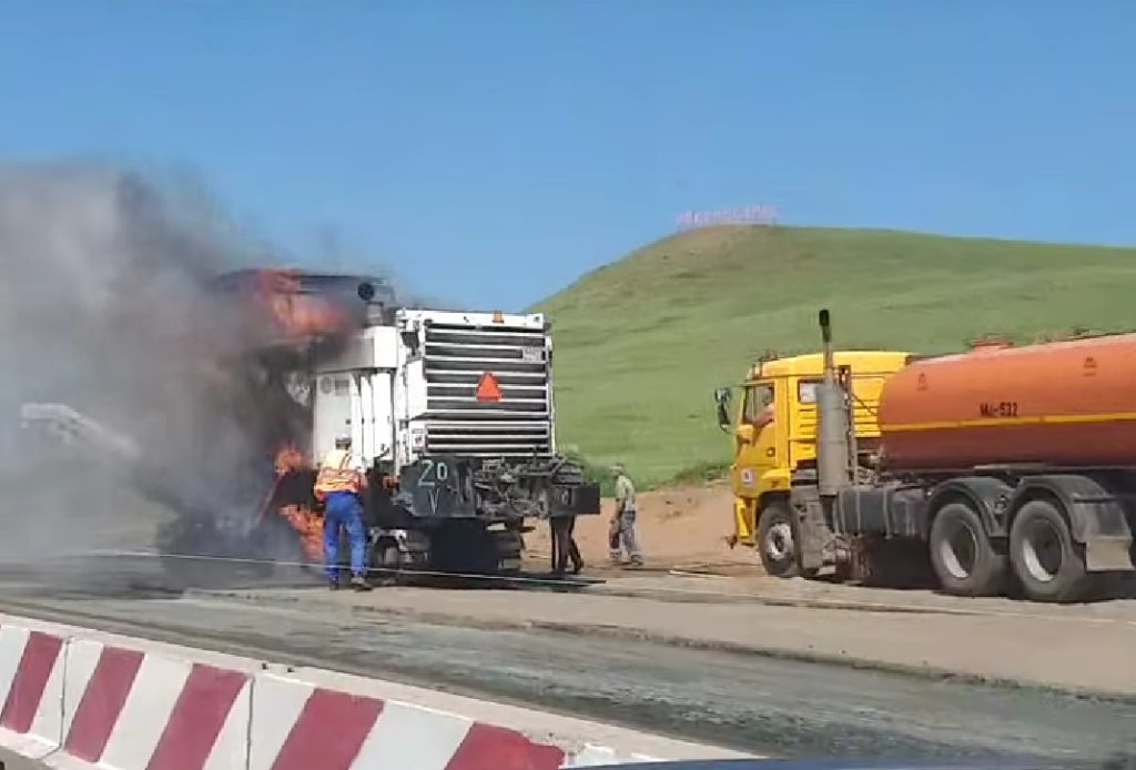 По словам свидетелей, дорожная техника вспыхнула на участке ремонта на трассе Оренбург-Самара в районе поворота на Сырт. Одна из спецмашин горела открытым пламенем.