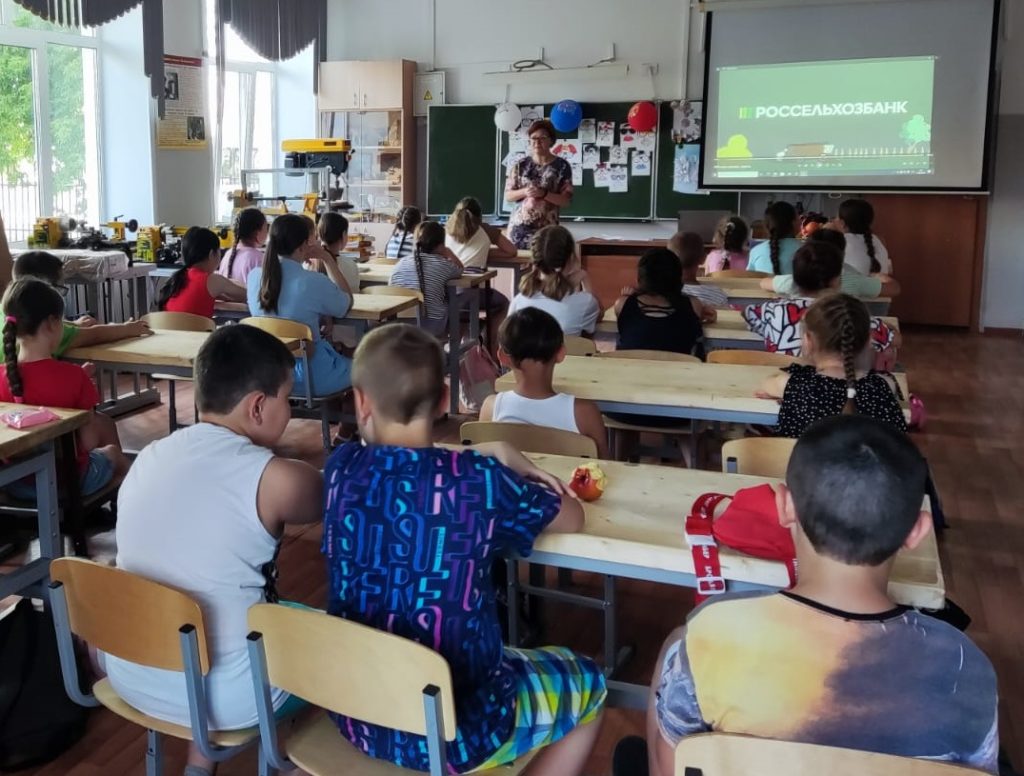 На занятие к лицеистам заглянули сотрудники Оренбургского регионального филиала РСХБ с интересными видеороликами о развитии российского агропромышленного комплекса и современной жизни фермеров, о выращивании и потреблении органических продуктов.