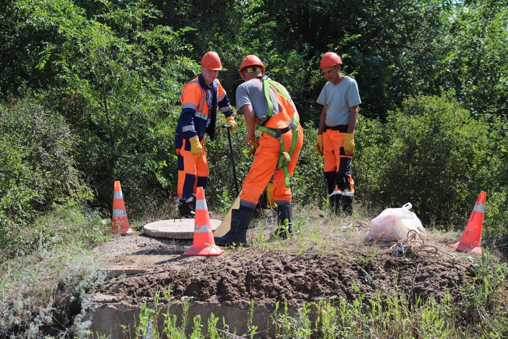 На иловых полях продолжается процесс естественного обезвоживания ранее размещенного осадка. С целью нейтрализации неприятного запаха производится отвод надиловой воды с переувлажненной площадки. Работы осложняются большим количеством осадков, выпавших в эти дни.