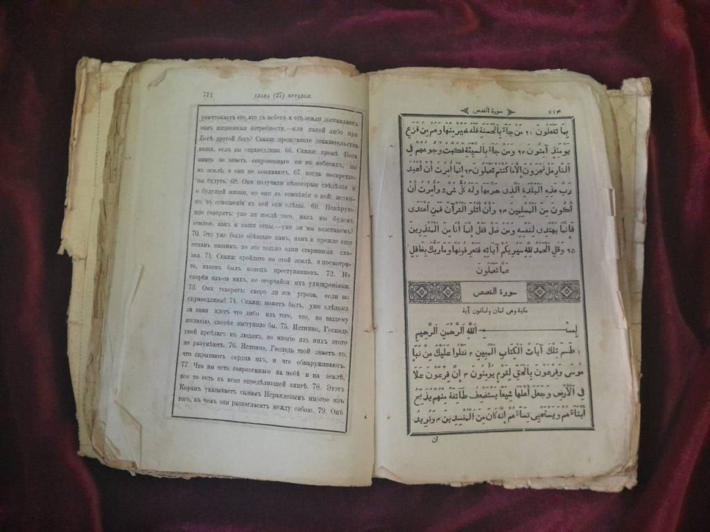 Новый экспонат музея был издан еще до революции в типографии Санкт-Петербурга. Уникальность изданию Корана придает то, что текст священного писания исполнен не только арабской вязью, но и продублирован на русском языке.