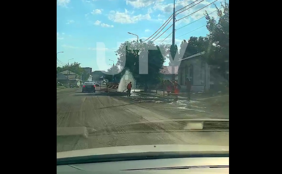 Судя по кадрам, на участке дорожного ремонта по Рыбаковской образовалась утечка. Фонтан забил на проезжей части. Участок огородили, на месте находились рабочие.