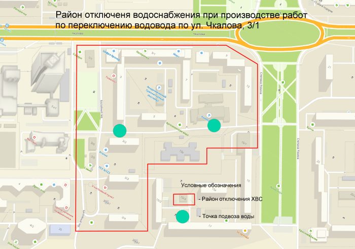 По информации компании Росводоканал Оренбург, с 10 утра 25 июля до 9 утра 26 июля холодное водоснабжение будет отсутствовать в районе, ограниченном улицами Чкалова – Степана Разина – Кавалерийской и переулком Бассейный. В связи с отключением воды не будет в академическом гуманитарном институте, Оренбургском колледже экономики и информатики, центре здорового питания и двух ЦТП.
