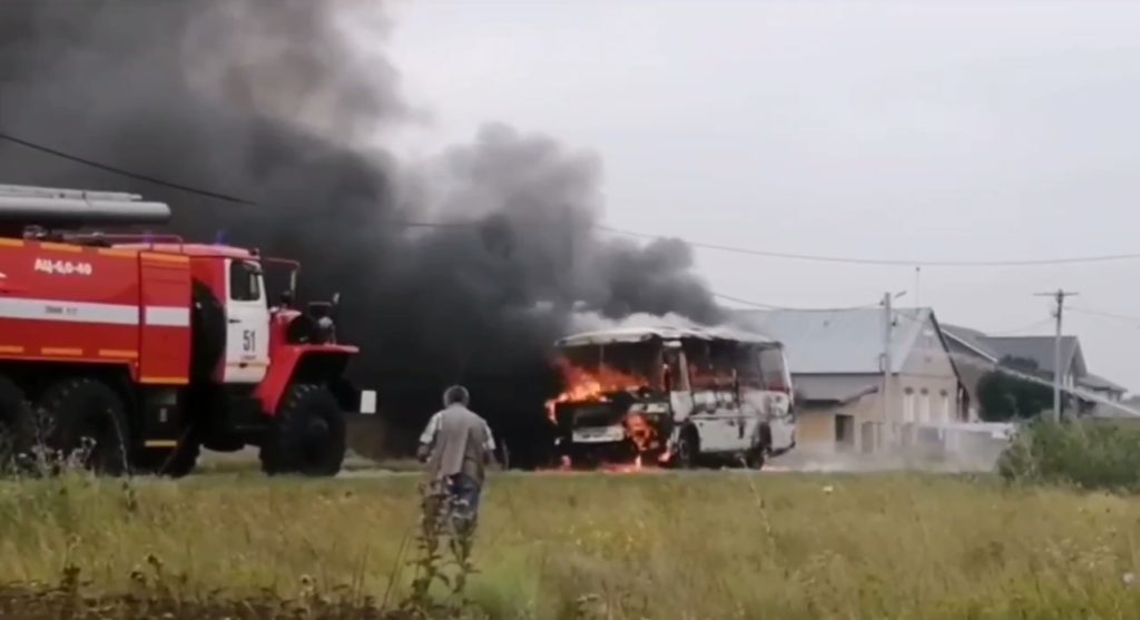 По оперативным данным, утром 24 июля в селе 9 Января на одной из улиц вспыхнул ПАЗ. Автобус полыхал открытым пламенем.
