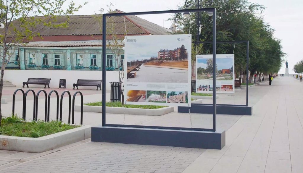 Выставка состоит из нескольких больших блоков. Это городская среда, социальные объекты, жилье и объекты культурного наследия.