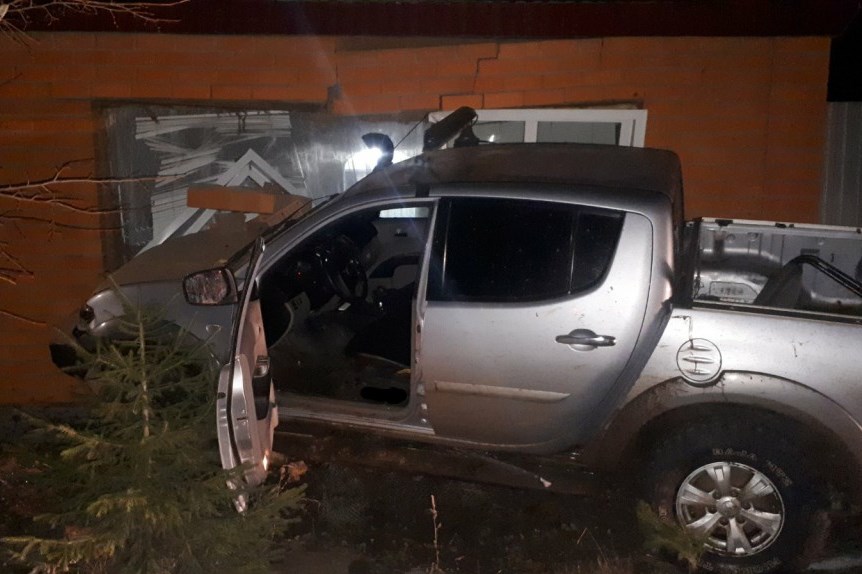 Удар пришелся в оконную раму. Кладка стены дома пострадала. Автомобиль также получил серьезные механические повреждения.
