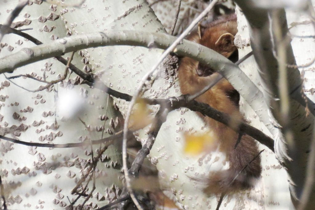 — Видимо большой толпой зимовать веселее и легче. Появился на заповедном участке и новый для нас подопечный. В заросшем деревьями глубоком овраге поселилась лесная куница. Надеюсь, останется здесь насовсем. Пока фотографироваться стесняется. Только технические фоточки сделать получилось.