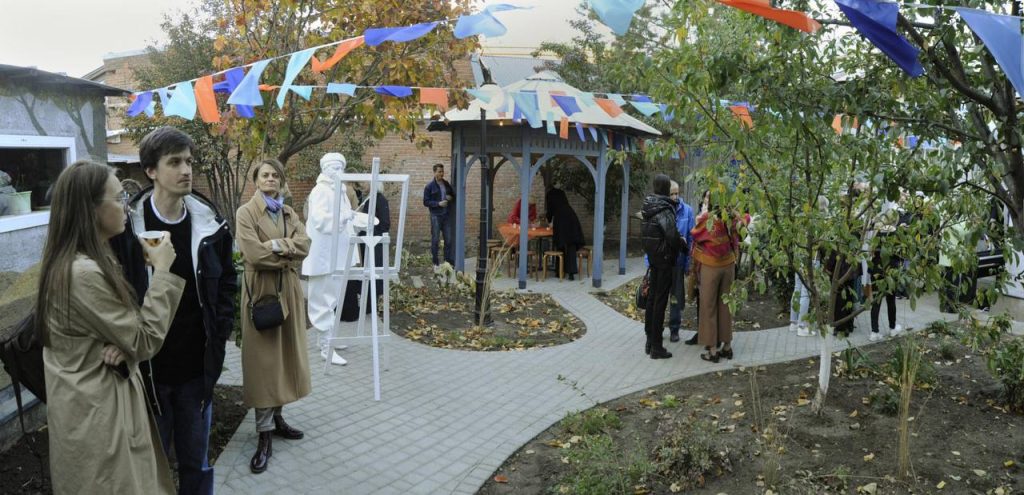 Во дворике, который стал доступен для посетителей 5 октября, смонтировали уличное освещение, установили беседку для проведения мастер-классов с детьми и оборудовали площадку для выставок, лекций и кинопоказов.