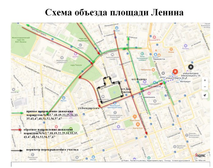 В мэрии подчеркнули, что изменения касаются тех автобусных и троллейбусных маршрутов, которые проходят через площадь им. Ленина. В частности, троллейбусы маршрута № 7 будут следовать до остановки «Центральный рынок».
