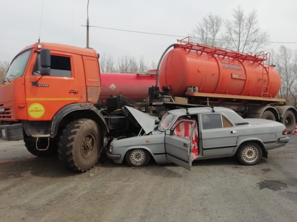 Транспортные средства получили серьезные механические повреждения. КамАЗ буквально переехал «Волгу».