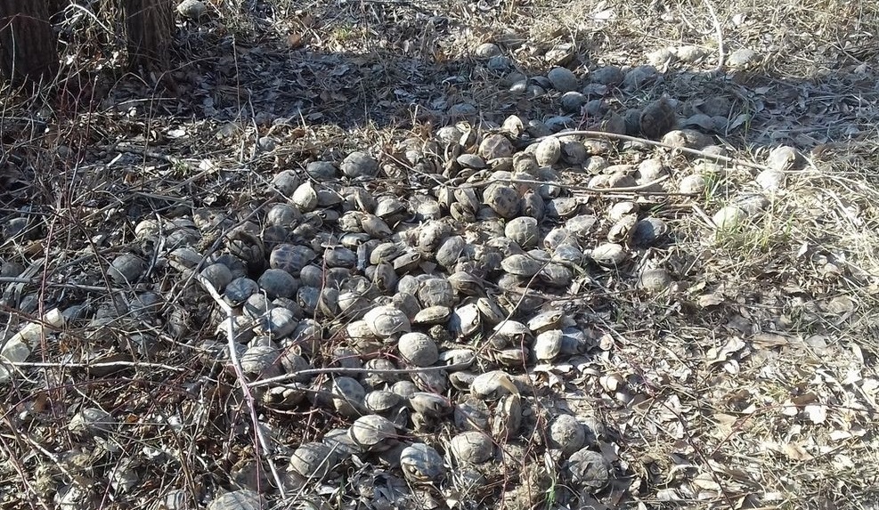 «Черепашье кладбище»находится в районе поселка ОЗТП. Причина массовой гибели животных неизвестна, сообщает Урал56.