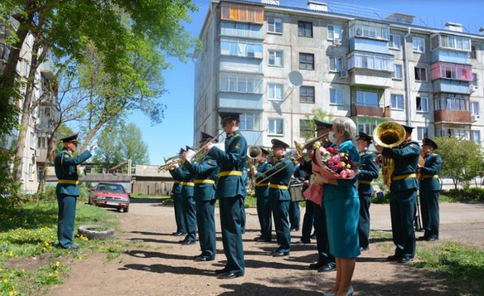 — 9 мая мы традиционно поздравляем и чествуем наших дорогих ветеранов. В этом году немного изменился формат праздничного мероприятия, жизнь вносит свои перемены. Совместно с городским Советом мы решили провести акцию «Поздравь ветерана», организовав оркестровый концерт прямо перед окнами наших героев, — рассказал заместитель командира войсковой части № 33860 по военно-политической работе, полковник Сергей Ковалев.
