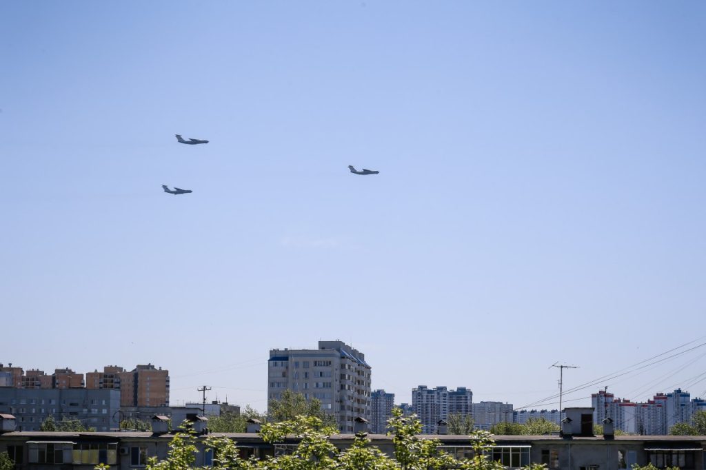 Утром 9 мая жители Оренбурга любовались на воздушный парад. В небе над городом пролетели три самолета Ил-76.