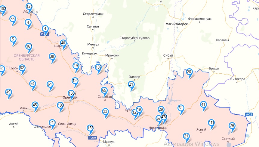 На протяжении нескольких суток сервис был недоступен. На нем велись технические работы. Сейчас там опубликованы данные на 9 июля. За дни технических работ на сервисе данные по ряду населенных пунктов — Оренбург, Орск, Абдулино, Соль-Илецк — существенно выросли.
