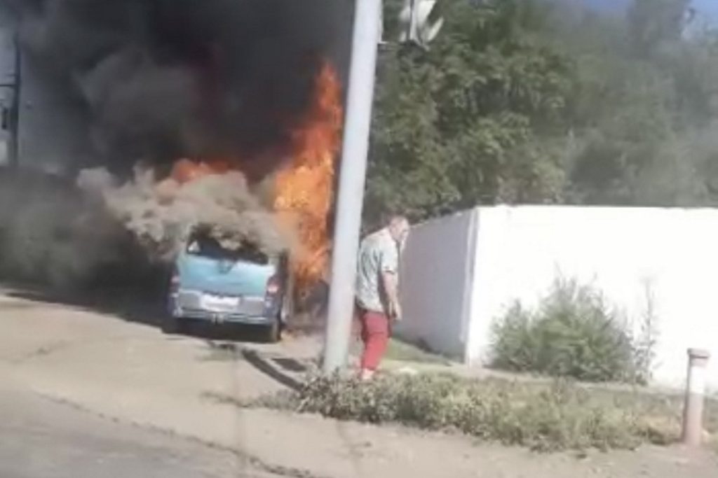 Серьезный пожар произошел на улице Невельской Оренбурге. Загорелся припаркованный на обочине автомобиль.