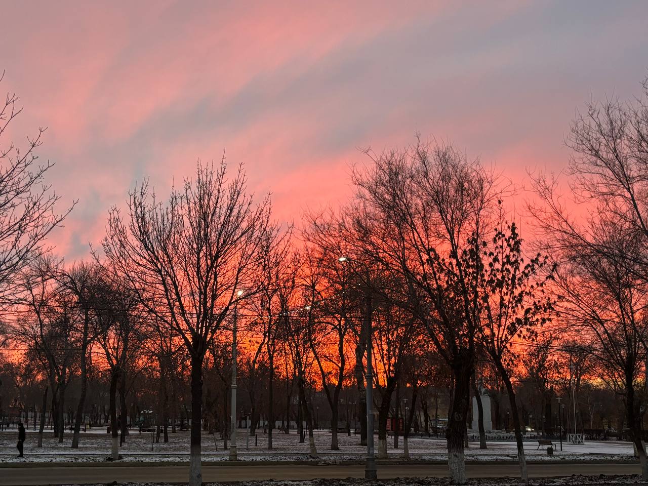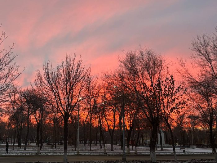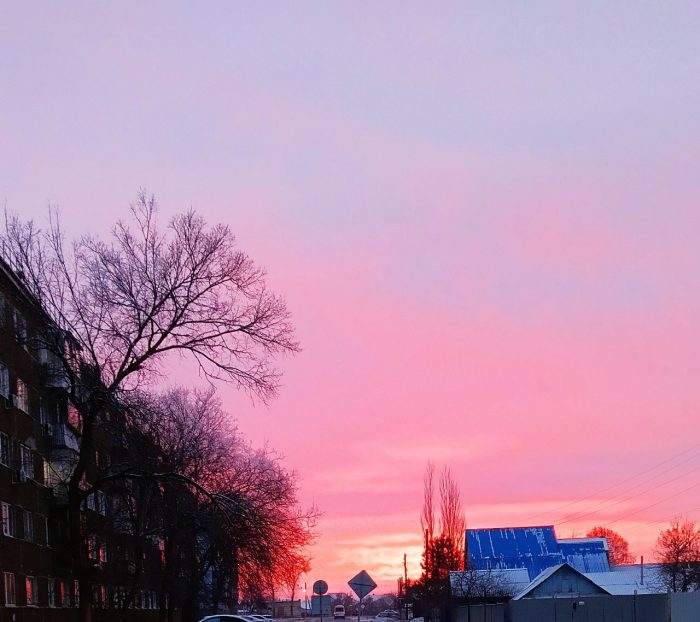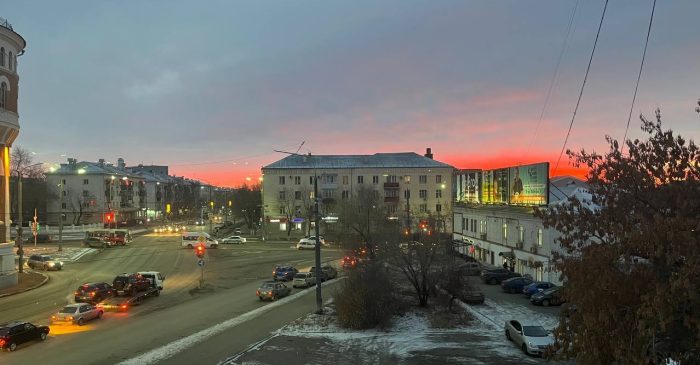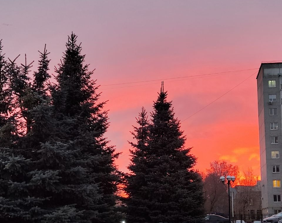 Девятого декабря оренбуржцы стали свидетелями невероятной красоты заката. Пурпурно-алое небо окутало запад города.