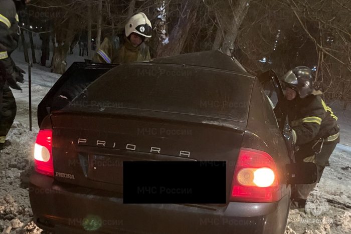 Спасатели достали из покореженной «Приоры» пострадавшего. Всего в ДТП травмы получили три человека. Обошлось без погибших.