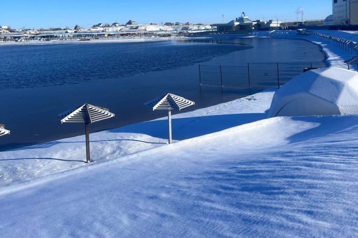 Озеро Развал в Соль-Илецке Оренбургской области не замерзает даже в самые лютые морозы. Однако, зимой гладь водоема нередко прикрывается коркой из снега.