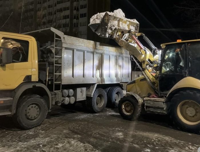 Коммунальщики ночью сгребали и вывозили снег на улицах Южно-Уральской, Карагандинской, Самолетной, Восточной, 60 лет Октября, Одесской, Советской, Пролетарской, Полигонной, Театральной, Ноябрьской, Березке, а также в переулке Дальнем.