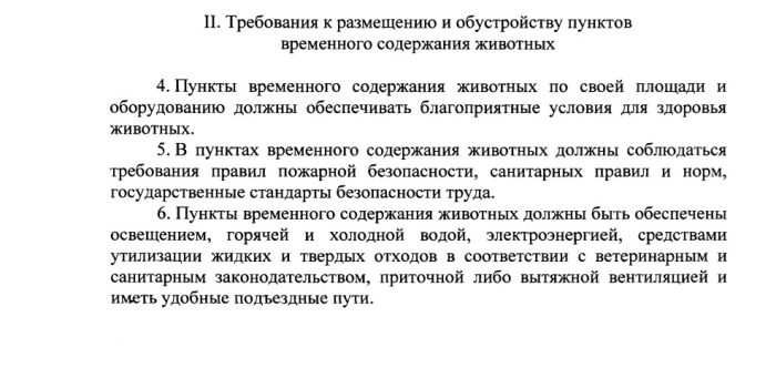 Кроме того, среди требований к ПВС — наличие холодильного оборудования для хранения препаратов, контракты с компаниям на приёмку биологических отходов, договор на санобработку дезсредствами автомобиля. На самом автомобиле должно быть указано название компании с телефонами. Отловщики обязаны пройти специальное обучение и иметь документ об этом.