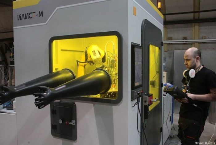Чтобы выполнить печать в формате 3D, в рабочую зону подают металлический порошок, плавят его лазером, затем при помощи двух печатающих роботов расплав перемещают в аргонную камеру, где путём послойного нанесения и создаётся требуемое изделие. Например, на изготовление фланца электрохимического генератора по этой технологии потребуется 2 недели, тогда как обычным способом деталь изготавливают за 8 месяцев.