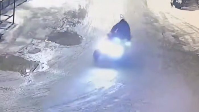 Инцидент случился около трех часов ночи на парковке в Оренбурге. Произошедшее попало на запись камеры видеонаблюдения.