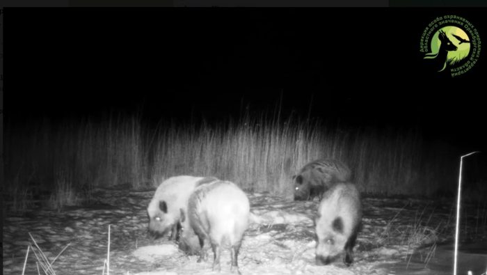 В зимний период добыча пропитания становится основным занятием для обитателей заказника. На этот раз в объектив фотоловушки попали кабаны за ночной трапезой. Видео опубликовал ТГ-канал Дирекции ООПТ Оренбургской области.